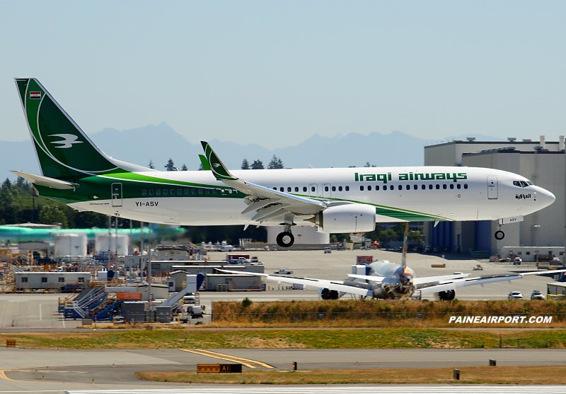 Iraqi Airways 737-81Z YI-ASV msn 40091 ln 6497 seen here at PAE Jul 19 passing through on a test flight BFI-BFI.