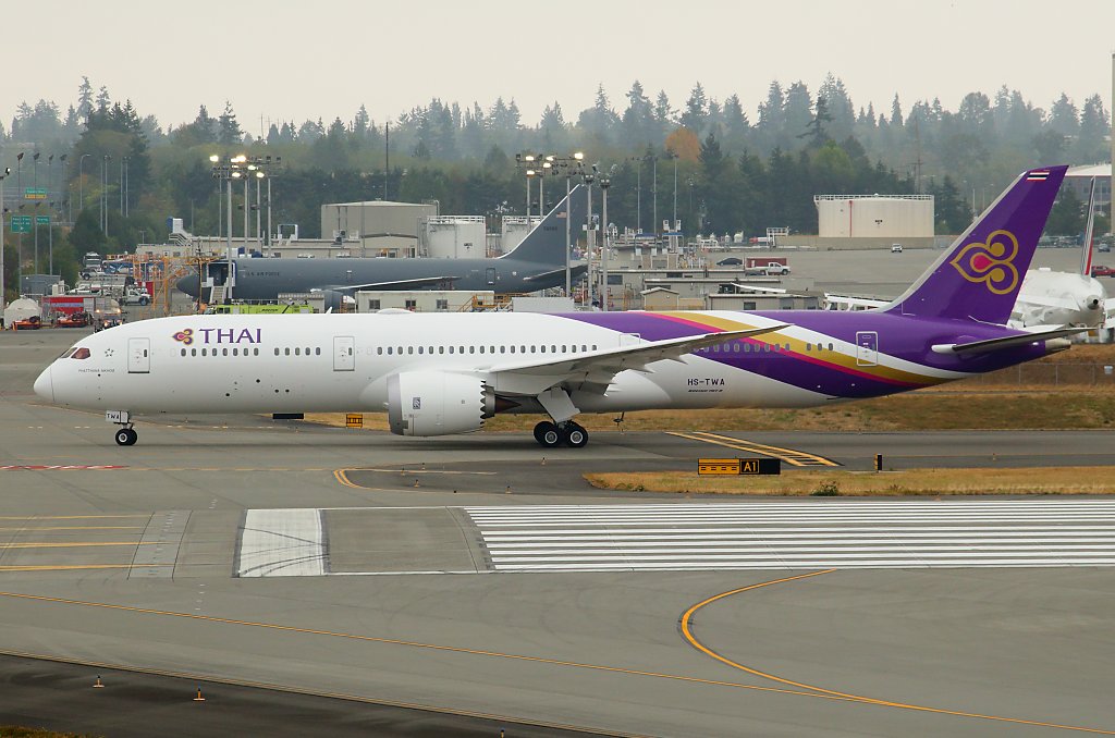 Thai Airways International 787-9 HS-TWA msn 38777 ln 602 flew away on delivery Sep 14, Paine-Field-Bangkok BKK flying as THA8909, however returned shortly after departure with a technical issue. Named "Phatthana Nikhom". Leased from Aercap.